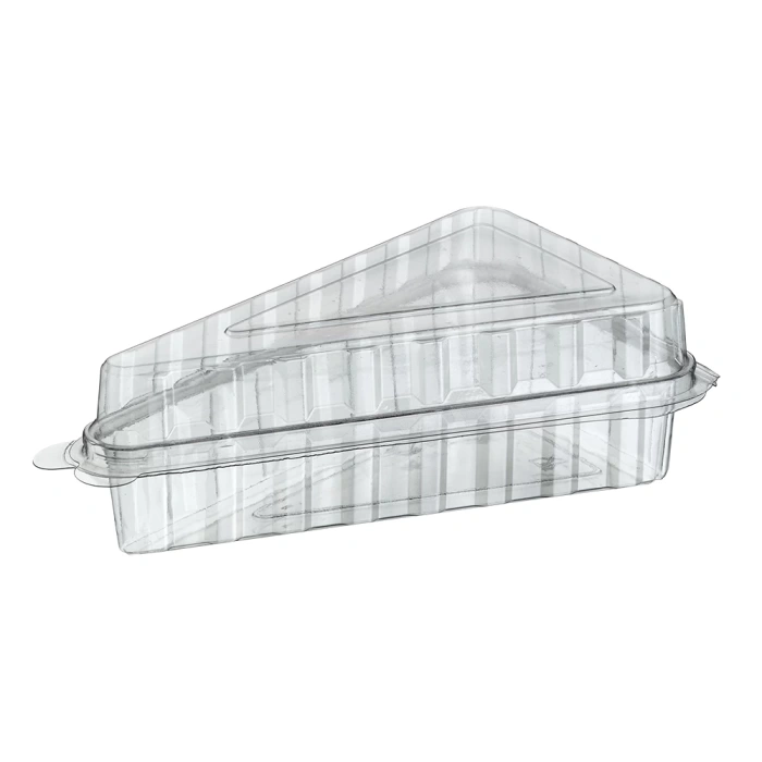 Kendinden kapaklı, şeffaf pet malzemeden sağlık standartlarına uygun , üçgen dilim pasta kabıdır.